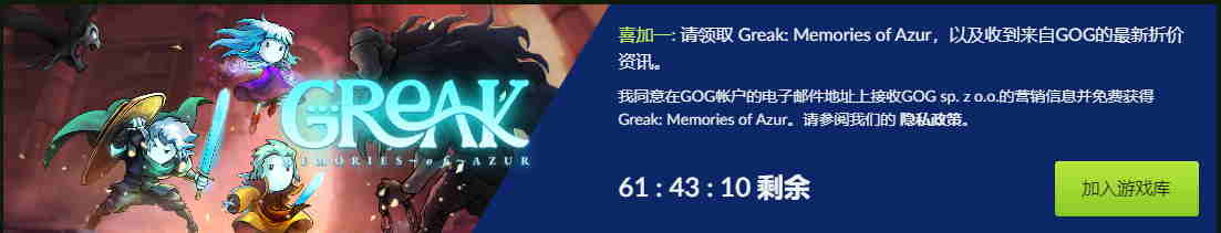 GOG游戏商城 喜+1 格里克大冒险:阿祖尔的回忆/Greak: Memories of Azur 官方中文 喜欢的赶紧入库,白嫖的不要白不要~~~